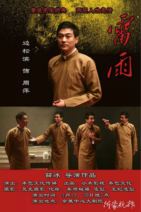 其實早在2016年的初春,薛冰和他的本色文化與臨沂大劇院合作,共同為家鄉(xiāng)父老上演了一部大型原創(chuàng)話劇《使命》,得到了一致好評。如今,他希望將《雷雨》搬上舞臺的想法,更是得到了臨沂話劇圈多位“名角”的大力支持,大家凝聚熱愛,只為實現(xiàn)心中共同的話劇夢。
