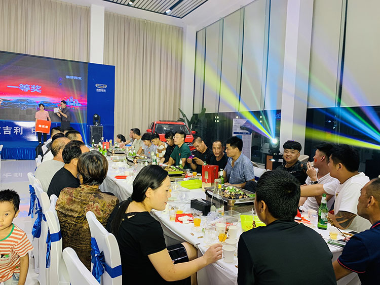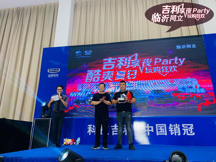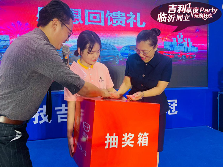 只要您在活動現(xiàn)場,您就可以拿到抽獎號碼,不停循環(huán)的抽獎,讓每一位朋友都期待萬分!臨沂同立店總劉曉輝女士,為您送上感恩回饋獎,更有天立集團(tuán)董事長杜田庭先生為一等獎得主頒獎!本次一等獎獎品為:吉利原廠套餐禮包(包括:吉利原廠彈射雨傘,吉利原廠全天候使用墨鏡,吉利原廠車載手機(jī)充電支架,吉利原廠紫外線滅菌燈)