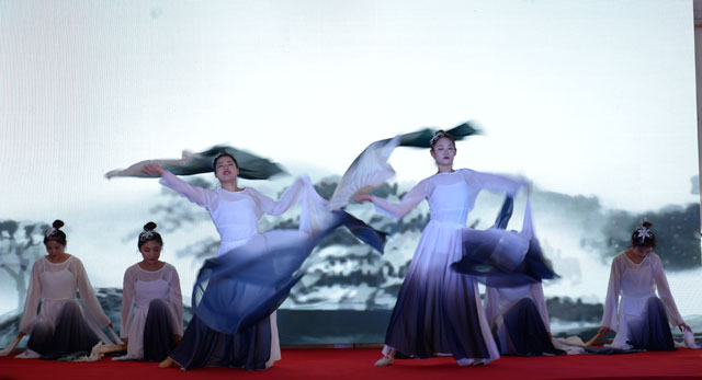 水墨舞、鋼管舞、朗誦《蘭亭序》.......歌舞升平中,由禮儀小姐抬來各位著名書法家現(xiàn)場共同創(chuàng)作的十米長卷,再一次震撼全場!